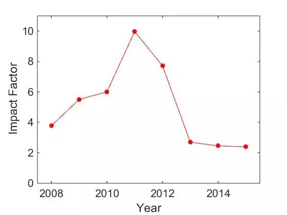 急功近利的做法,对学术期刊的影响是毁灭性的。有一个很好的例子是期刊LPL,看看这个杂志的影响因子变化: